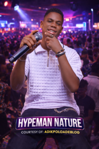 He ( Hypeman Nature) is a performer in music, particularly hip-hop and Afrobeats, responsible for controlling crowd energy, providing backing vocals, and boosting the main artist. Notable figures include Nigerian pioneer